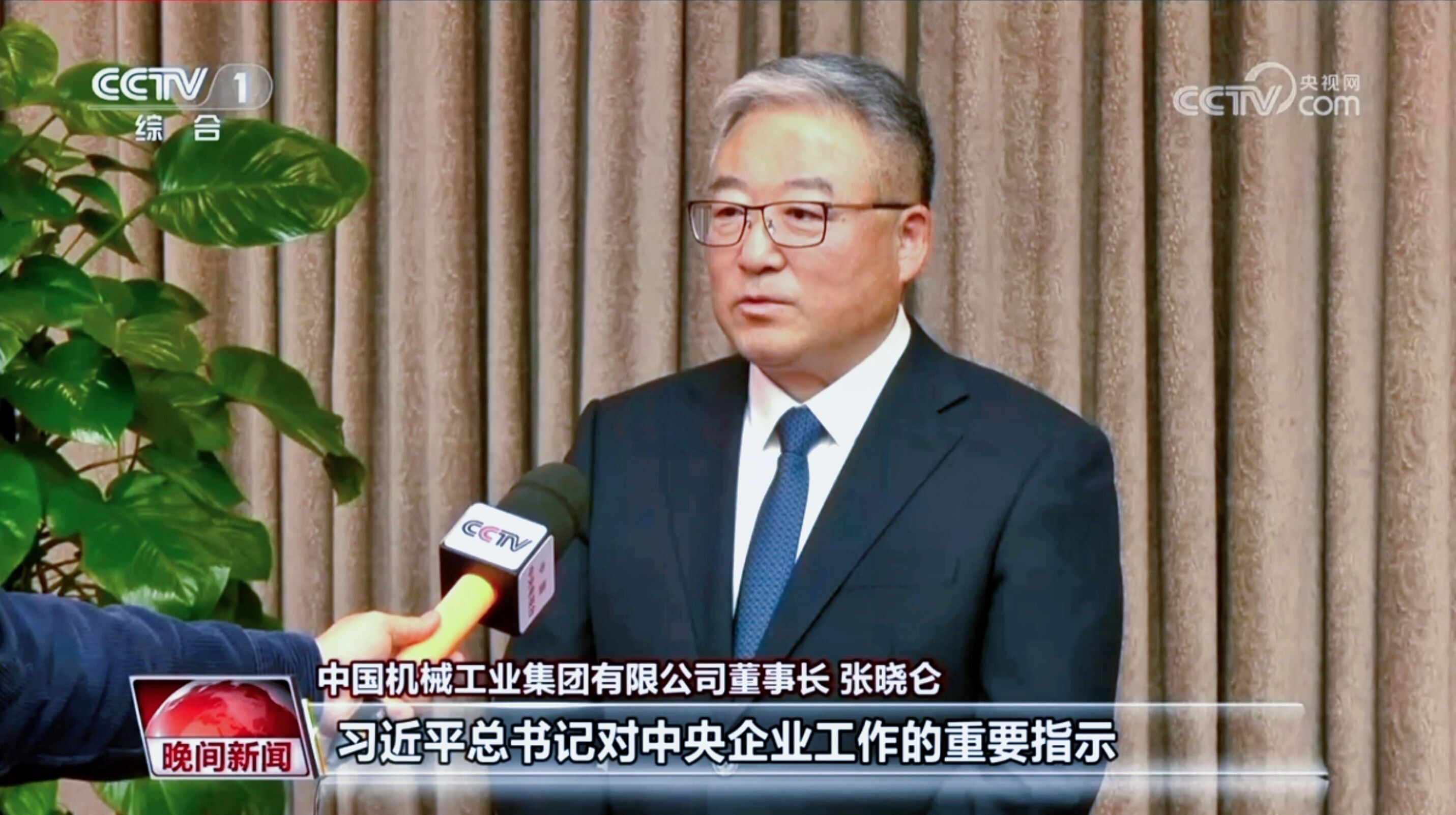 12月24日,中央广播电视总台综合频道晚间新闻播发《牢记使命 服务党和国家工作大局 为中国式现代化建设贡献更大力量——习近平总书记对中央企业工作的重要指示引发热烈反响》报道,国机集团党委书记、董事长张晓仑接受采访。